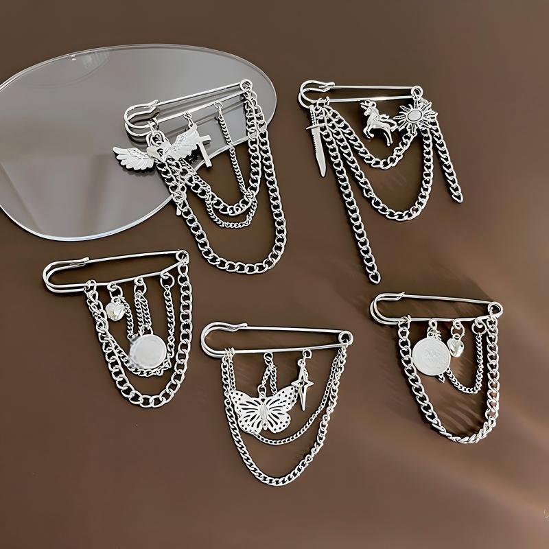 Introducing our new cool-style metal brooch pin, designed with a striking three-dimensional structure and embellished with multi-layered chain fringes for a bold, fashionable look. This unique accessory combines modern edge with refined craftsmanship, making it the perfect statement piece for individuals who love expressive and stylish details.