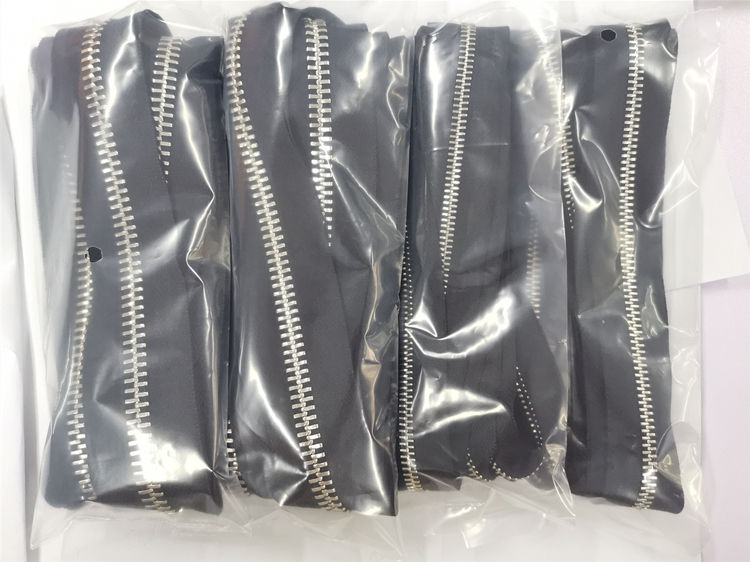 #5 Open metal zipper roll Clothing zipper wholesale, this open metal zipper roll can be customized in length and size, used for sewing clothing, wallets, bags, handbags, crafts, etc. Silver teeth and black classic color, material is metal teeth (zinc alloy) + polyester tape. No minimum order quantity, free samples.