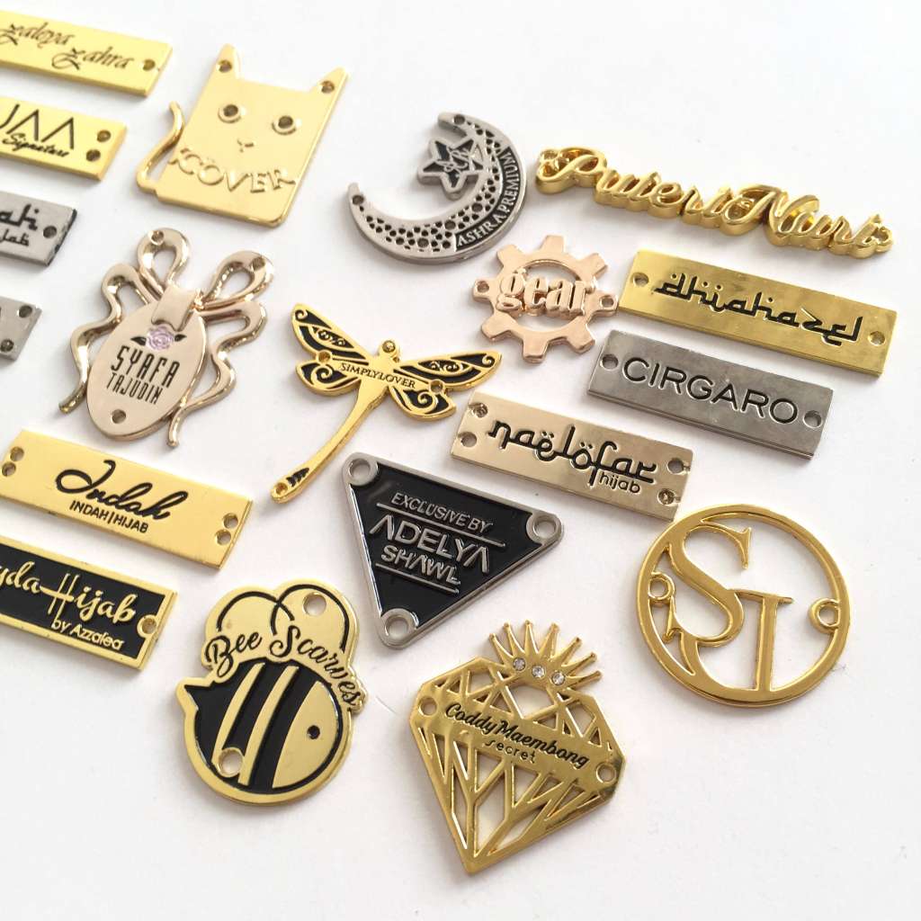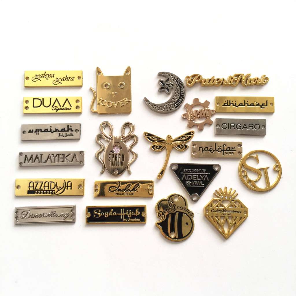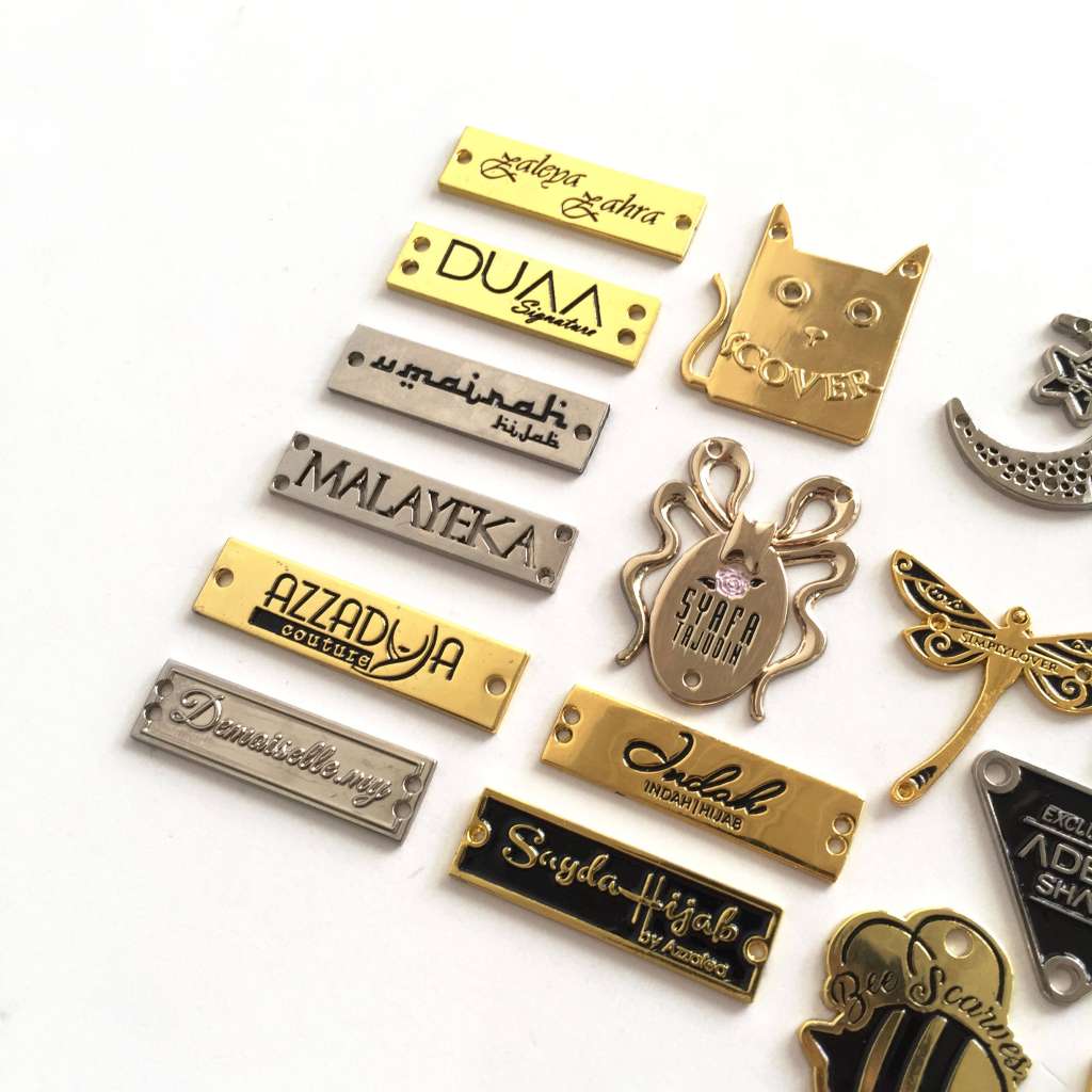 This premium gold engraved metal nameplate is made of high-quality electroplating technology, luxurious and durable. This single-sided folding nameplate is made of environmentally friendly metal and is available in nickel, gold and bronze colors. It can be customized with engraved logos, brand names or patterns. It is both elegant and practical, and is ideal for embellishing handbags, clothing, shoes and accessories.